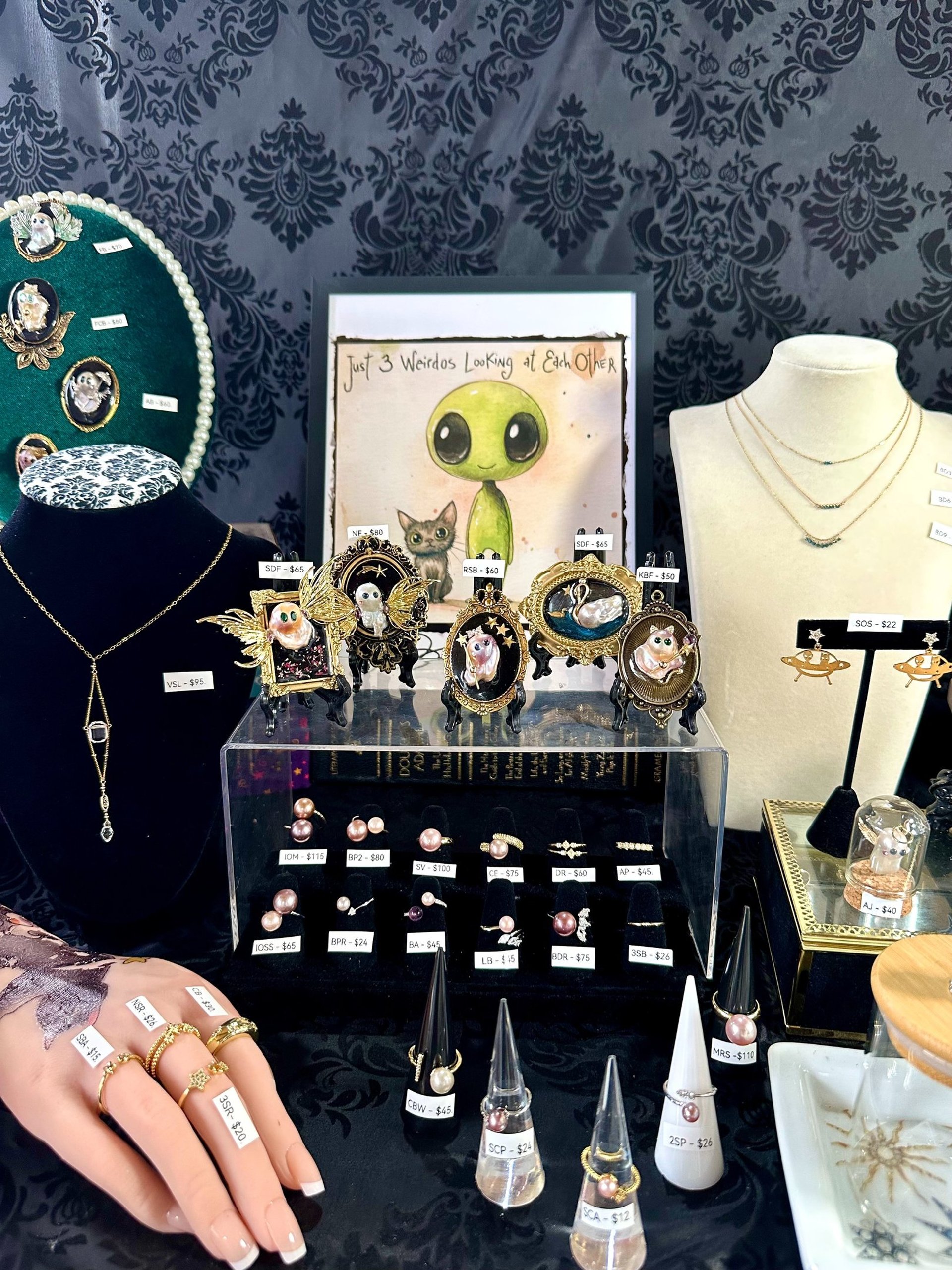 Step inside my salon before the doors officially creak open. Here’s your first look at the ghosts, misfits, and one-of-a-kind jewels preparing to debut during my upcoming live show. Some shimmer. Some haunt. All are dying to meet you.